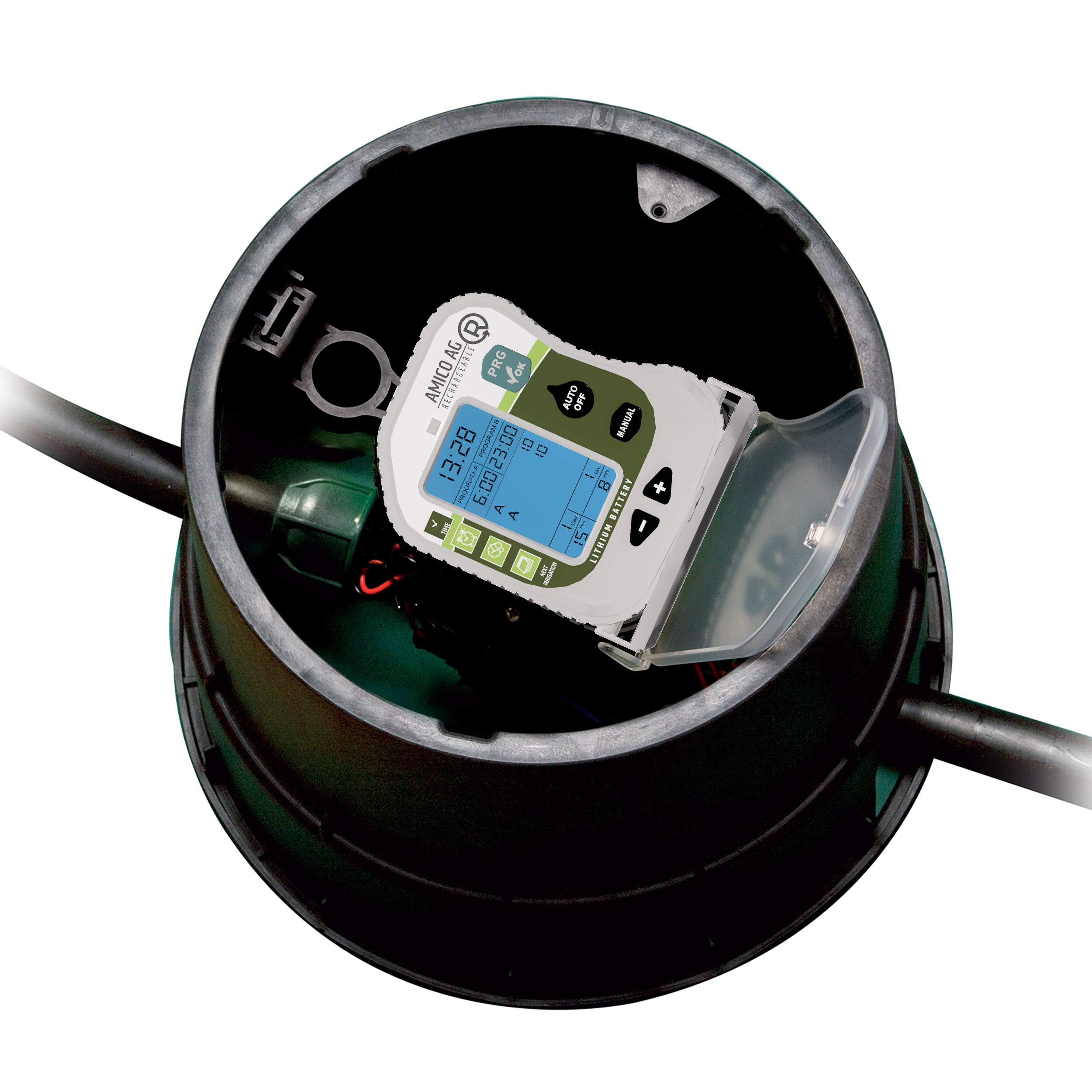 Προγραμματιστής μπαταρίας AMICO Pro 1 Στάσης επαναφορτιζόμενος της εταιρείας Rain, πλήρως αδιάβροχος IP68.