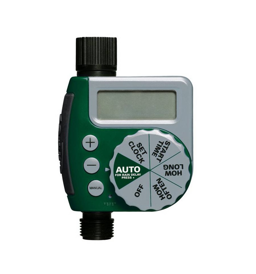 Προγραμματιστής ποτίσματος μπαταρίας της ORBIT μίας εξόδου με ψηφιακή οθόνη. Οι επιλογές γίνονται εύκολα, από την ρύθμιση της ώρας, τον χρόνο ποτίσματος, την συχνότητα, την διάρκεια και κατόπιν την ενεργοποίηση της λειτουργίας. Διαθέτει λειτουργία καθυστέρησης του προγράμματος, καθώς και κουμπί διακοπής του προγράμματος. Διάρκεια ποτίσματος από 1 έως 240 λεπτά και συχνότητα ποτίσματος κάθε 6 ή 12 ώρες ή από 1 έως 7 ημέρες. Δυνατότητα καθυστέρησης ποτίσματος (24, 48 και 72 ωρών) για εξοικονόμηση νερού. Δουλεύει με 2 μπαταρίες αλκαλικές AA.