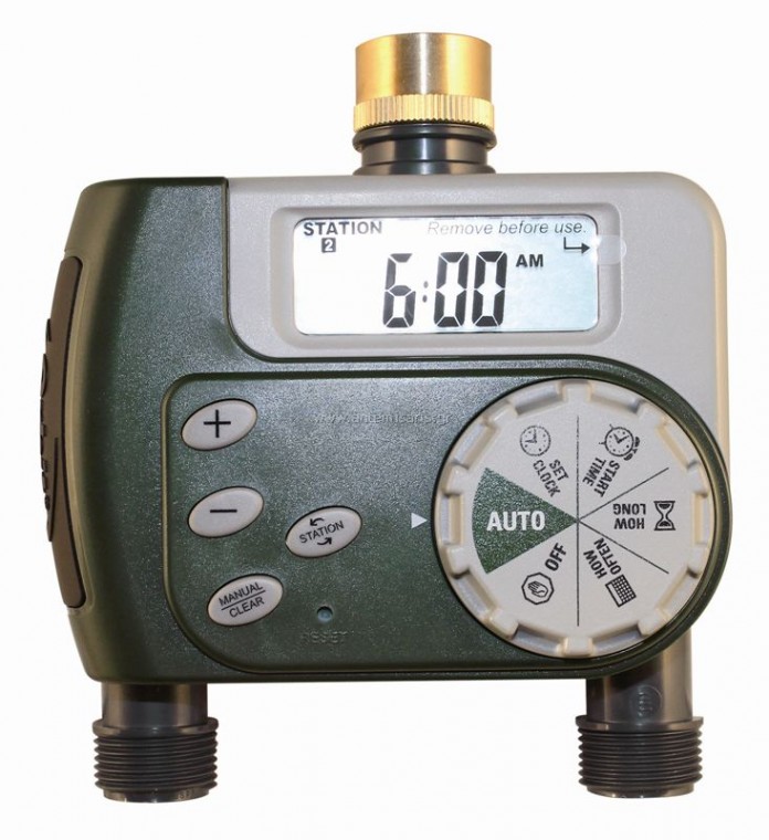 Προγραμματιστής ποτίσματος μπαταρίας της ORBIT δύο εξόδων με ψηφιακή οθόνη. Οι επιλογές γίνονται εύκολα, από την ρύθμιση της ώρας, τον χρόνο ποτίσματος, την συχνότητα, την διάρκεια και κατόπιν την ενεργοποίηση της λειτουργίας. Διαθέτει λειτουργία καθυστέρησης του προγράμματος, καθώς και κουμπί διακοπής του προγράμματος. Διάρκεια ποτίσματος από 1 έως 240 λεπτά και συχνότητα ποτίσματος κάθε 6 ή 12 ώρες ή από 1 έως 7 ημέρες. Δυνατότητα καθυστέρησης ποτίσματος (24, 48 και 72 ωρών) για εξοικονόμηση νερού. Δουλεύει με 2 μπαταρίες αλκαλικές AA.